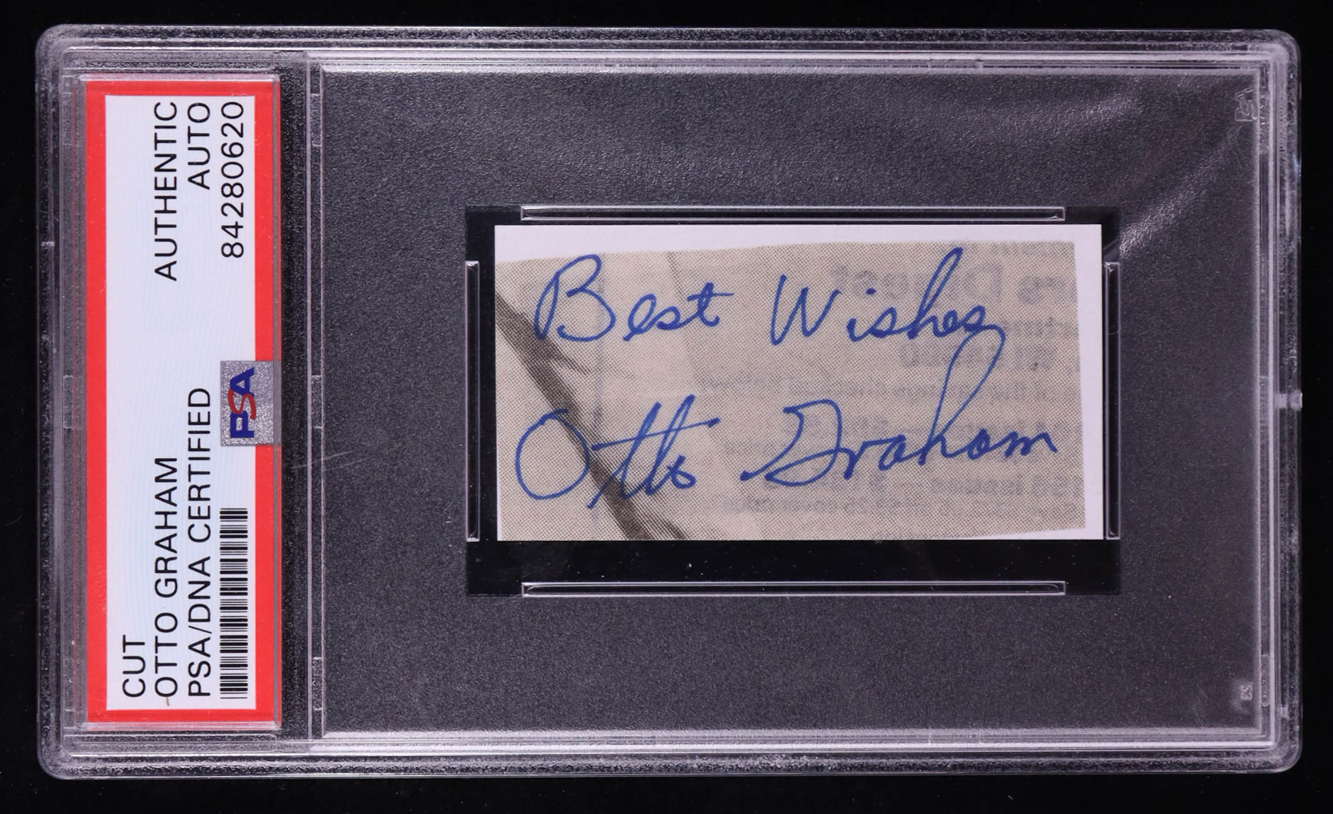 Cut measures approximately 1" x 3" and has been hand-signed by Otto Graham (Cleveland Browns, HOF). Please see images for details regarding the condition of the card.
