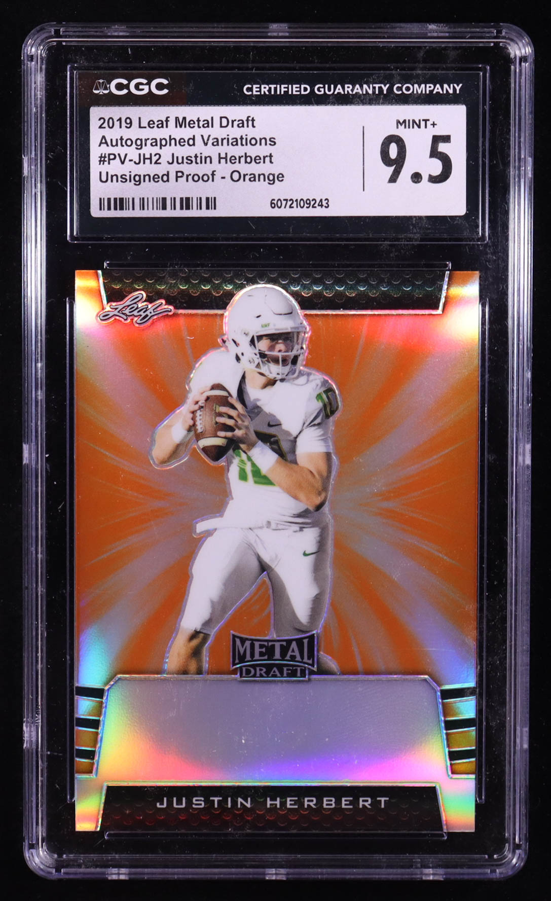 Justin Herbert 2019 Leaf Metal Draft Unsigned Proof Orange Autographed Variations #PVJH2 (CGC 9.5)