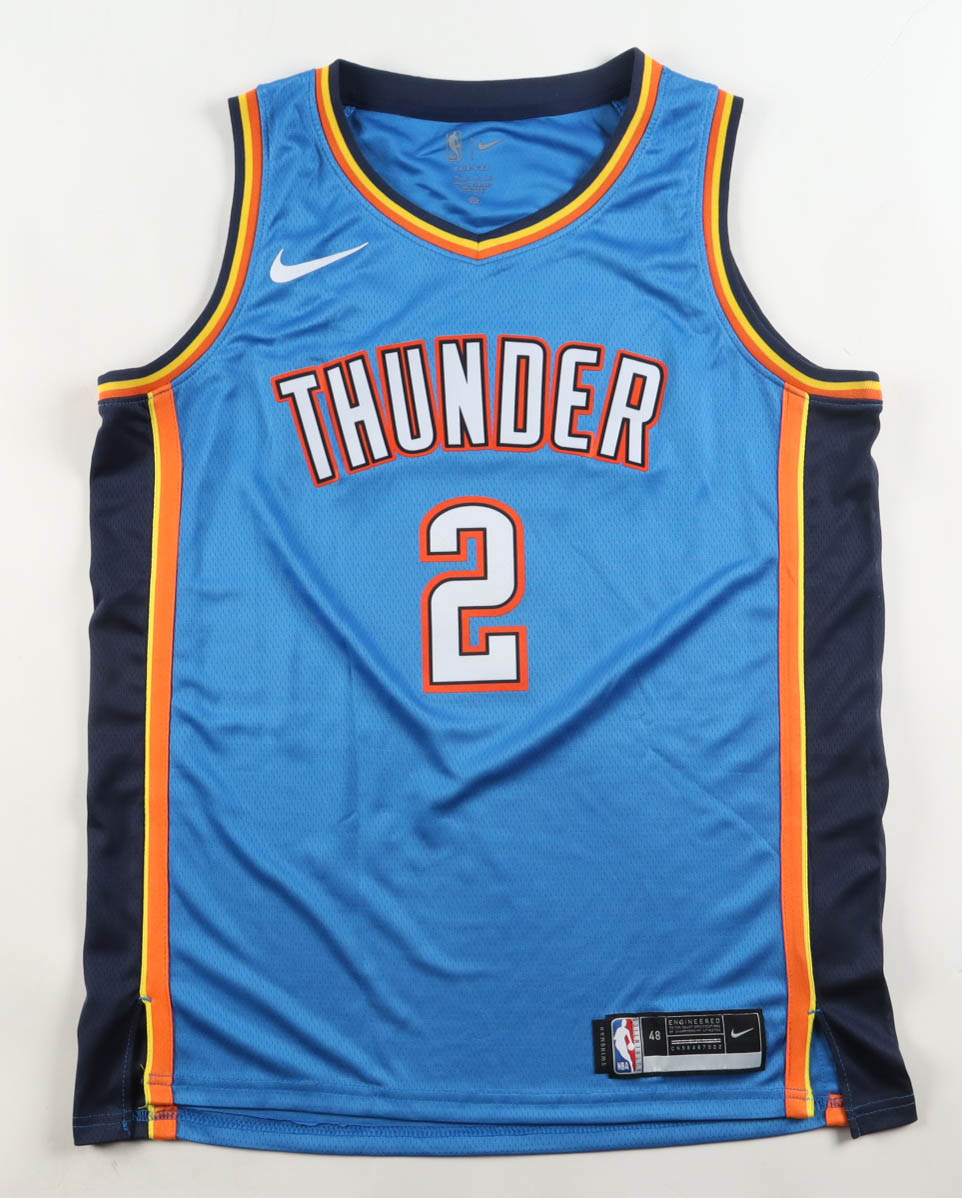 Nike authentic jersey with everything pressed on, size 48. Hand-signed by Shai Gilgeous-Alexander (Oklahoma City Thunder).