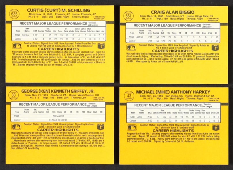 1989 Donruss Complete Set of (660) Baseball Cards with Ken Griffey Jr. #33 RC, Craig Biggio #561, Curt Schilling #635, Mike Harkey #43 RC