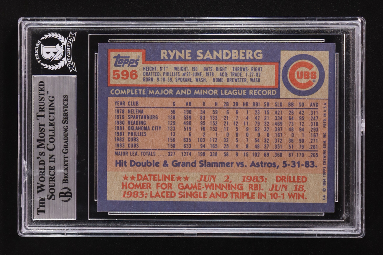 Ryne Sandberg Signed 1984 Topps #596 (BGS)