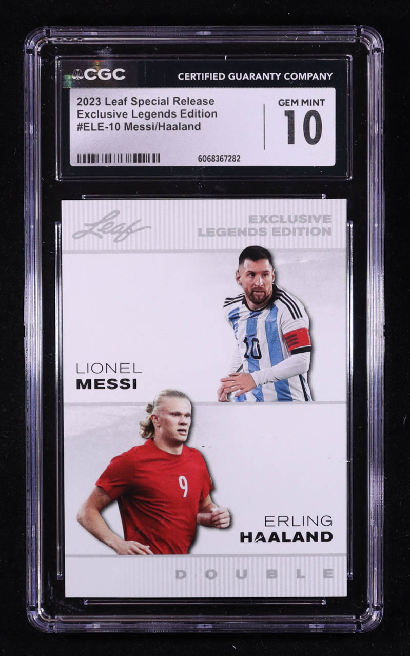 Lionel Messi / Erling Haaland 2023 Leaf Special Release Exclusive Legends Edition #ELE10 (CGC 10)
