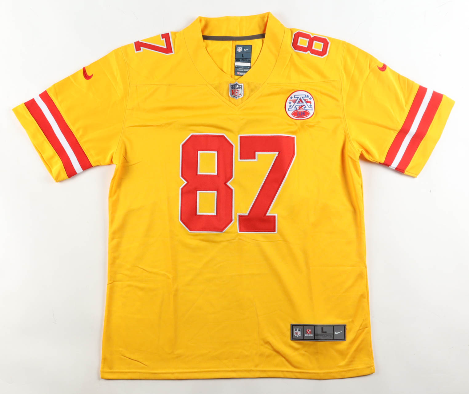 Nike authentic jersey with everything sewn on, size XL. Hand-signed by Travis Kelce (Kansas City Chiefs).