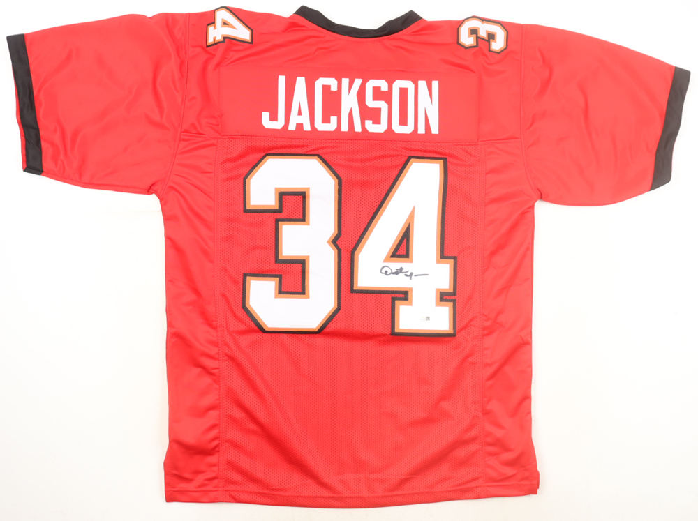 Custom jersey with everything sewn on, size XL. Hand-signed by Dexter Jackson.