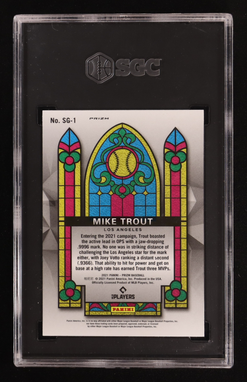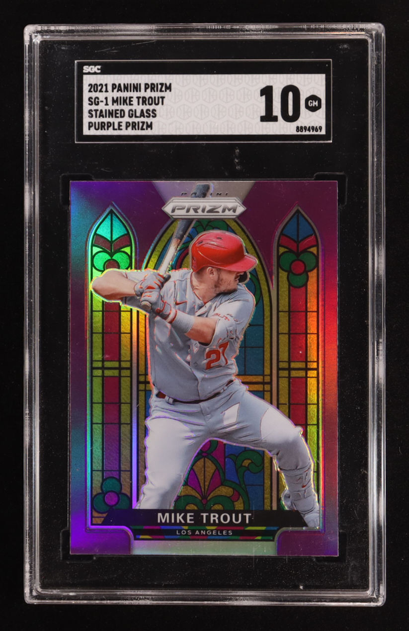 Mike Trout 2021 Panini Prizm Stained Glass Prizms Purple #1 (SGC 10)