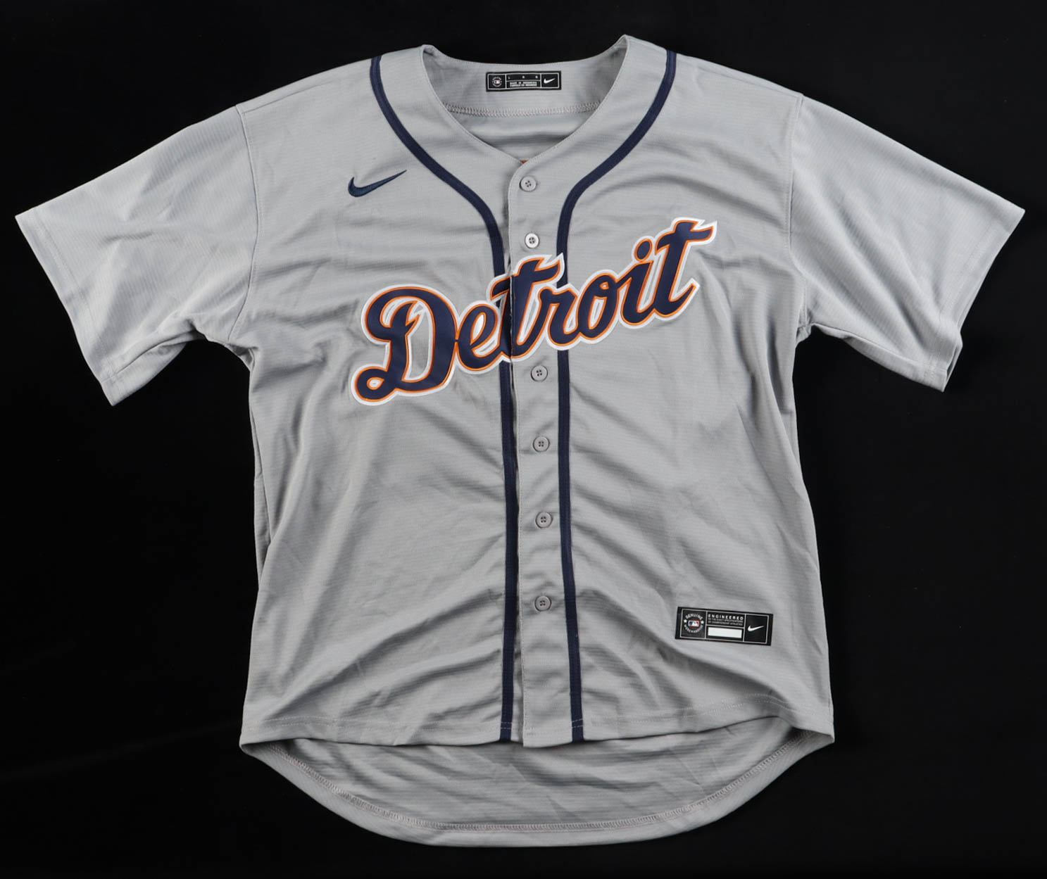 Nike authentic jersey with everything sewn on, size L. Hand-signed by Miguel Cabrera (Detroit Tigers).