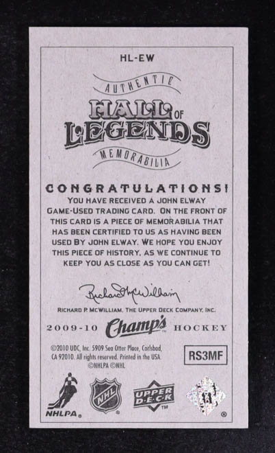John Elway 2009-10 Upper Deck Champ's Hall of Legends Memorabilia #HLEW