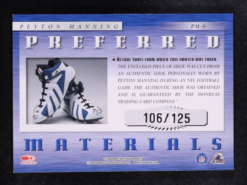 Peyton Manning 2000 Donruss Preferred Materials #PM9 #106/125