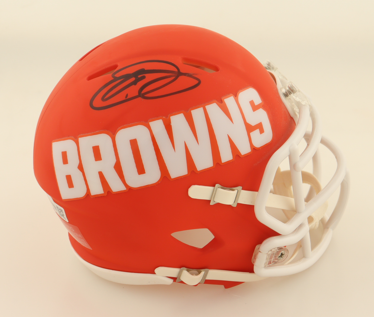 Riddell Cleveland Browns AMP Alternate Speed mini helmet. Hand-signed by Odell Beckham Jr.