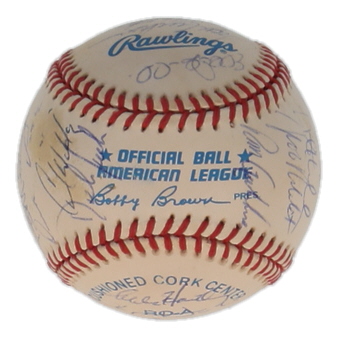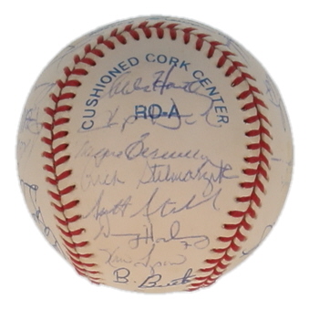 Official American League Baseball has been hand-signed by (31) with Kirby Puckett, Dave Winfield, Larry Casian, Brian Harper, Kent Hrbek, Chip Hale, Tom Kelly and (24) others. Please see photos for details regarding the condition of the item.