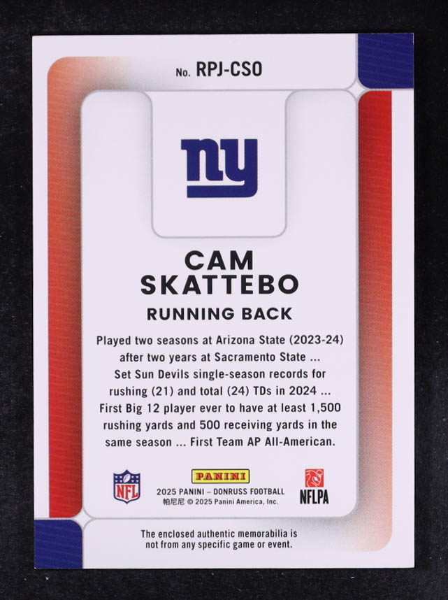Cam Skattebo 2025 Donruss Rookie Phenom Jerseys #31 RC
