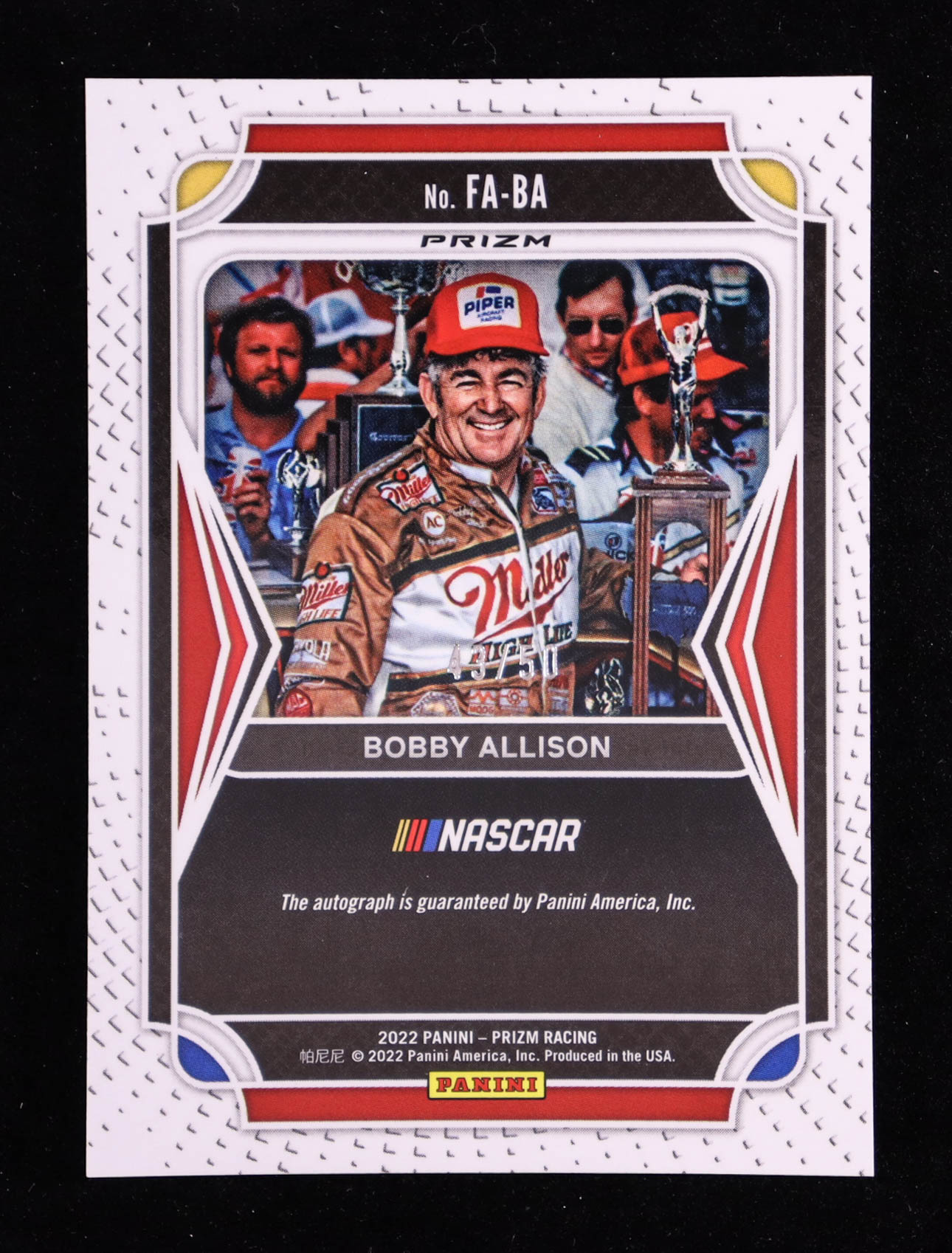Bobby Allison 2022 Panini Prizm Flashback Autographs Prizms Carolina Blue Scope #2 #43/50