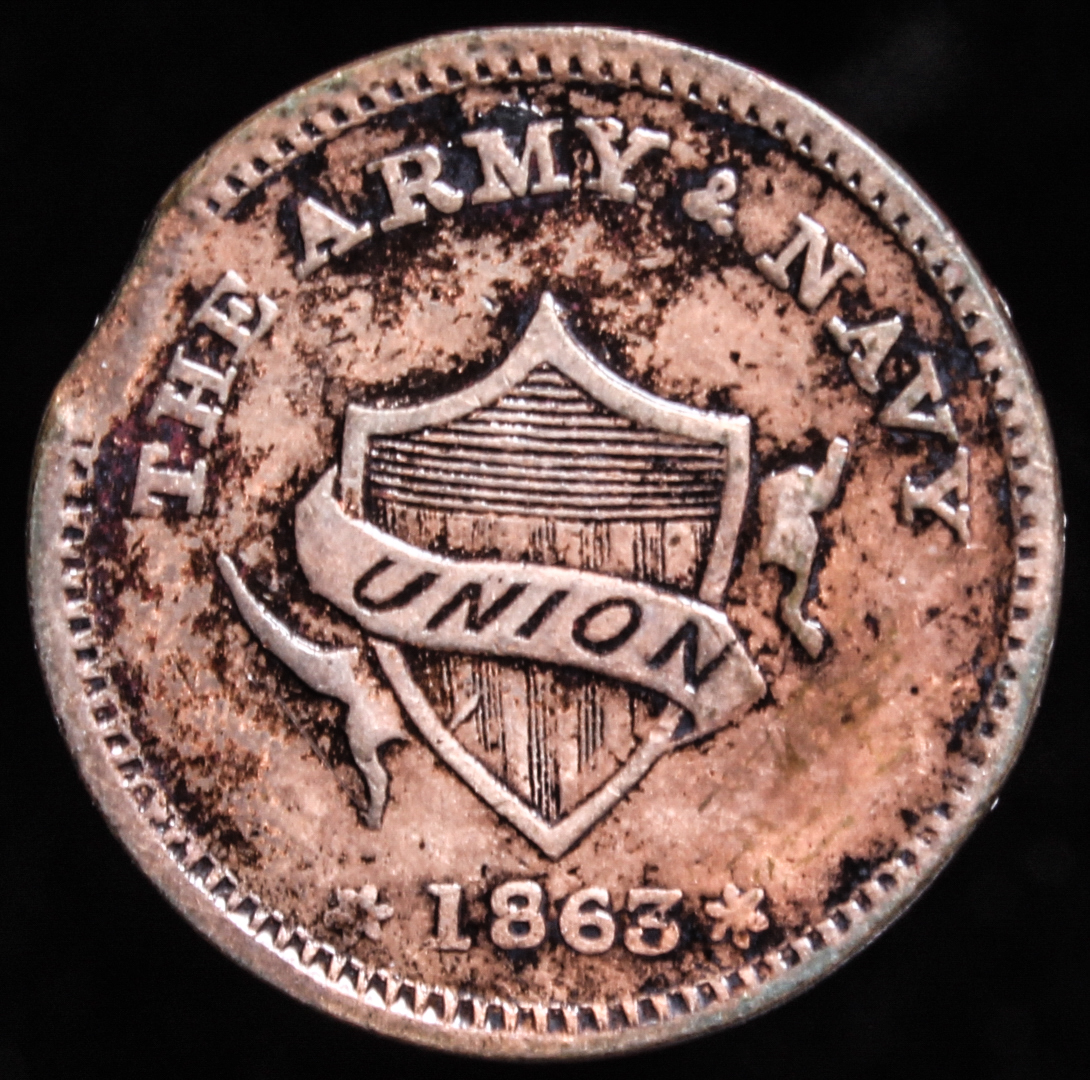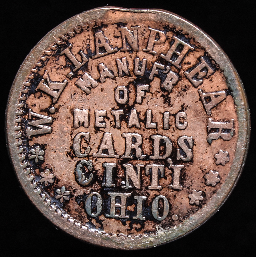 1863 Civil War Store Card Token - The Army & Navy / W.K. Lanphear Manuf'r of Metalic Cards Cint'i Ohio