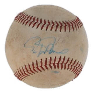 Rawlings Official Minor League Baseball. Hand-signed by Rafael Palmeiro (Texas Rangers). Please note, the baseball is naturally toned and stained.