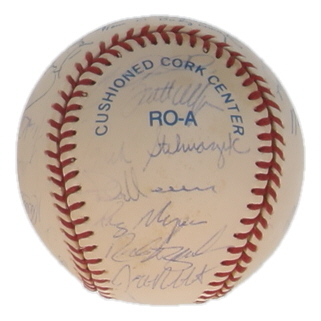Rawlings Official American League baseball has been hand-signed by (30) with Kirby Puckett, Paul Molitor, Ron Gardenhire, Marty Cordova, Pat Meares, Rich Becker, Ron Coomer, Ruben Kelly, Tom Kelly and () others Please note, the baseball is naturally toned.