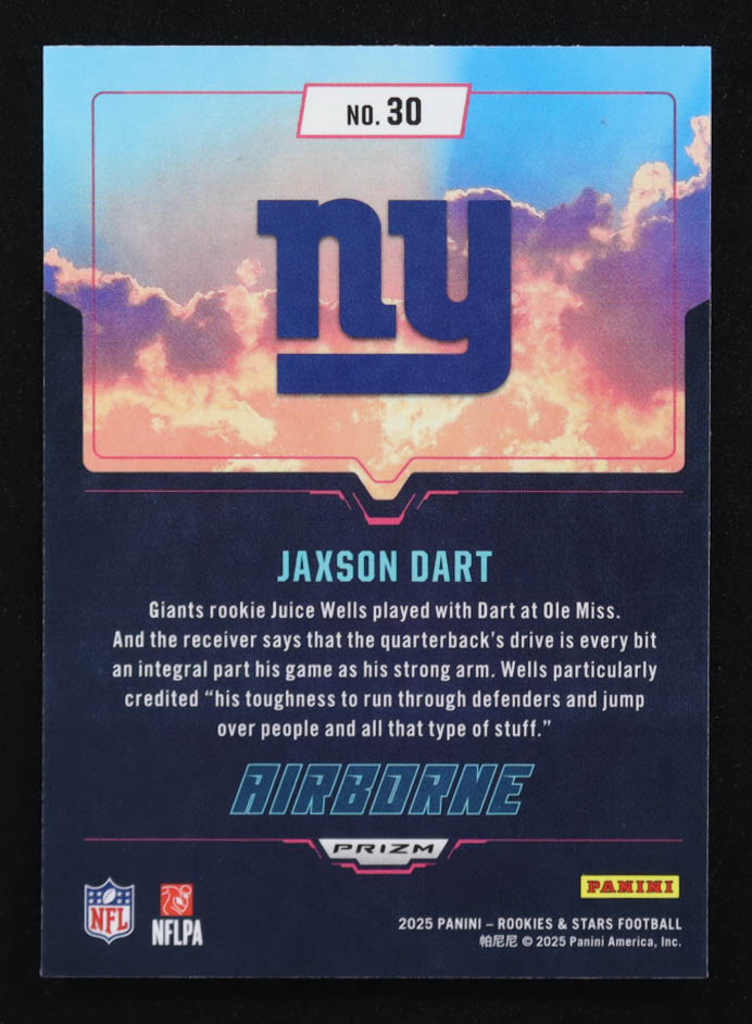 Jaxson Dart 2025 Panini Rookies and Stars Airborne Blue Plaid #30 RC