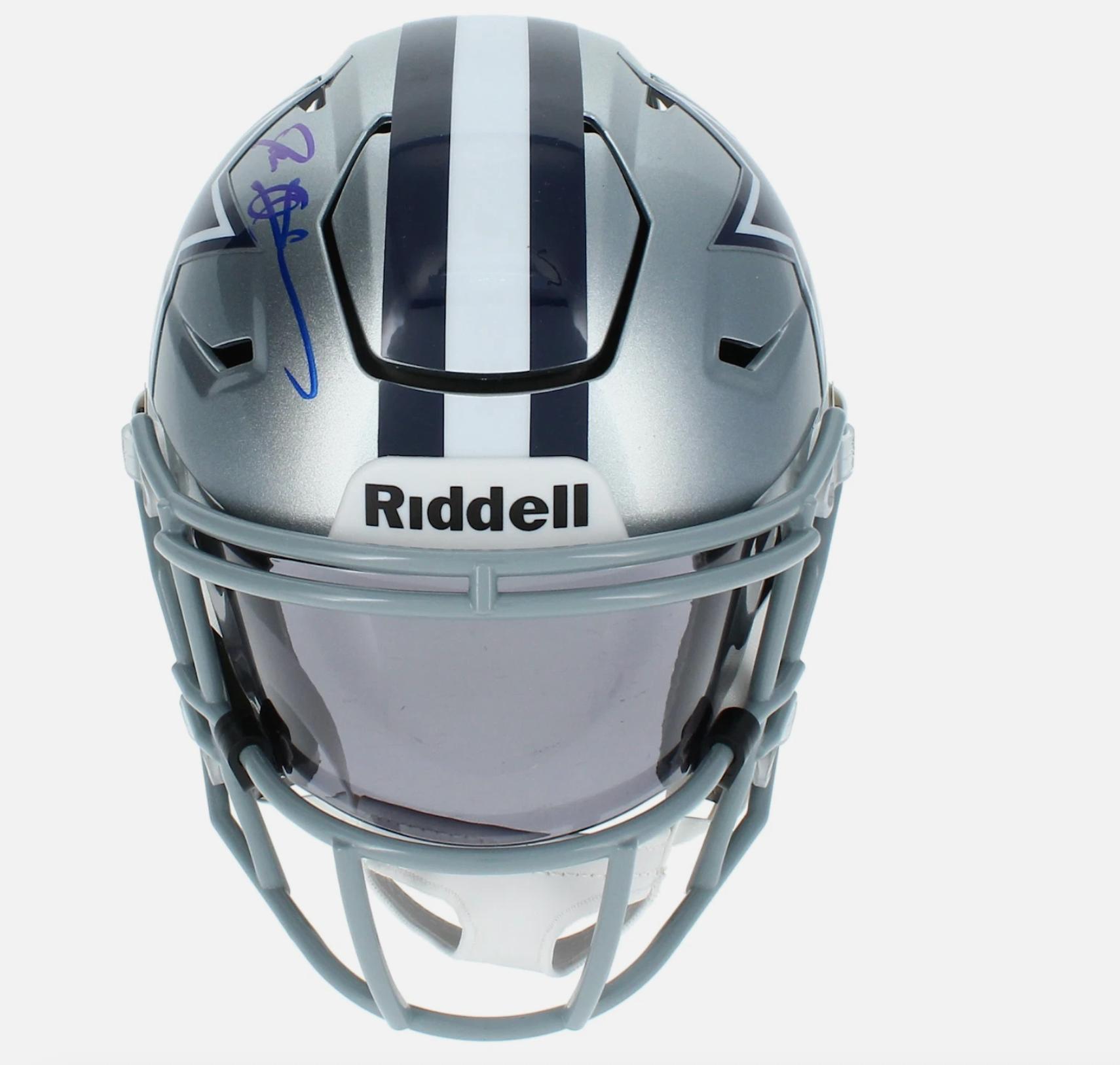 Riddell Dallas Cowboys mid-size speedflex helmet has been hand-signed by Deion Sanders (HOF).