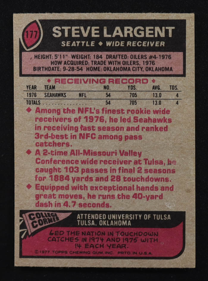 Steve Largent 1977 Topps #177 RC