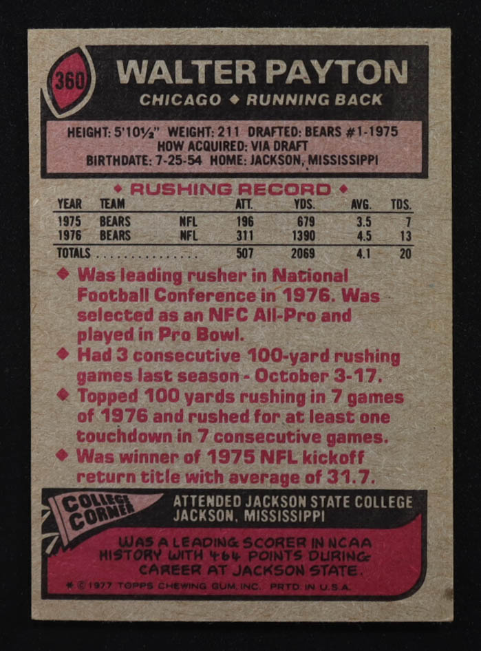 Walter Payton 1977 Topps #360 AP