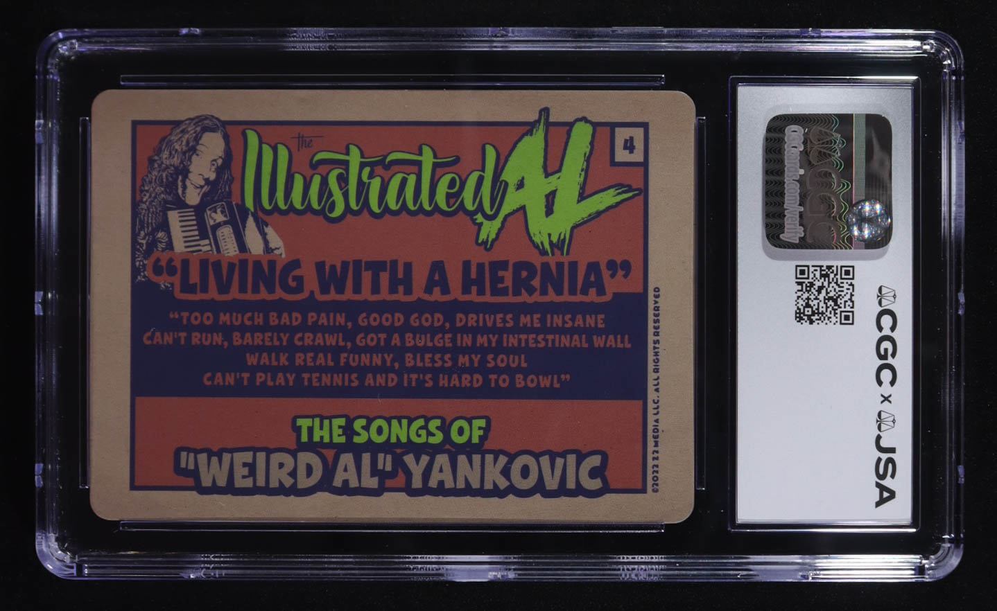 Card has been hand-signed by “Weird Al” Yankovic. Card has been graded (CGC/JSA) 8 | Autograph Graded (CGC/JSA) Authentic. Please see photos for more details regarding the condition of the card.