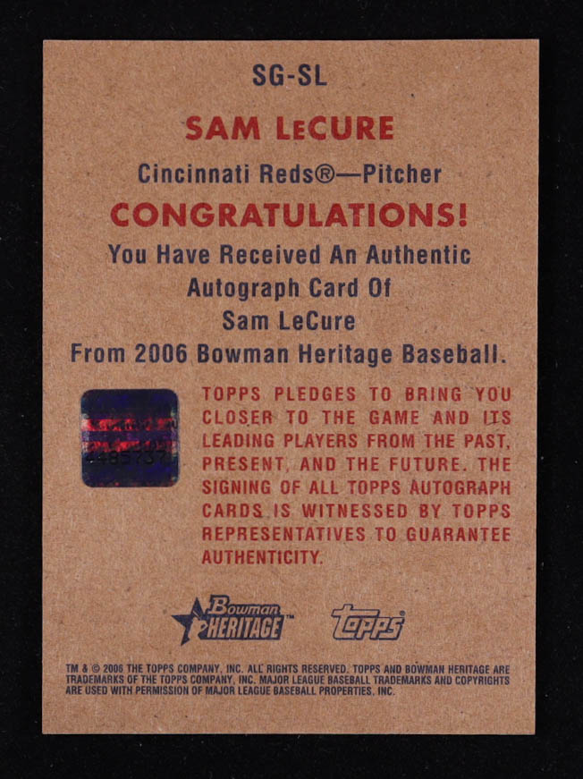 Sam LeCure 2006 Bowman Heritage Signs of Greatness #SL RC