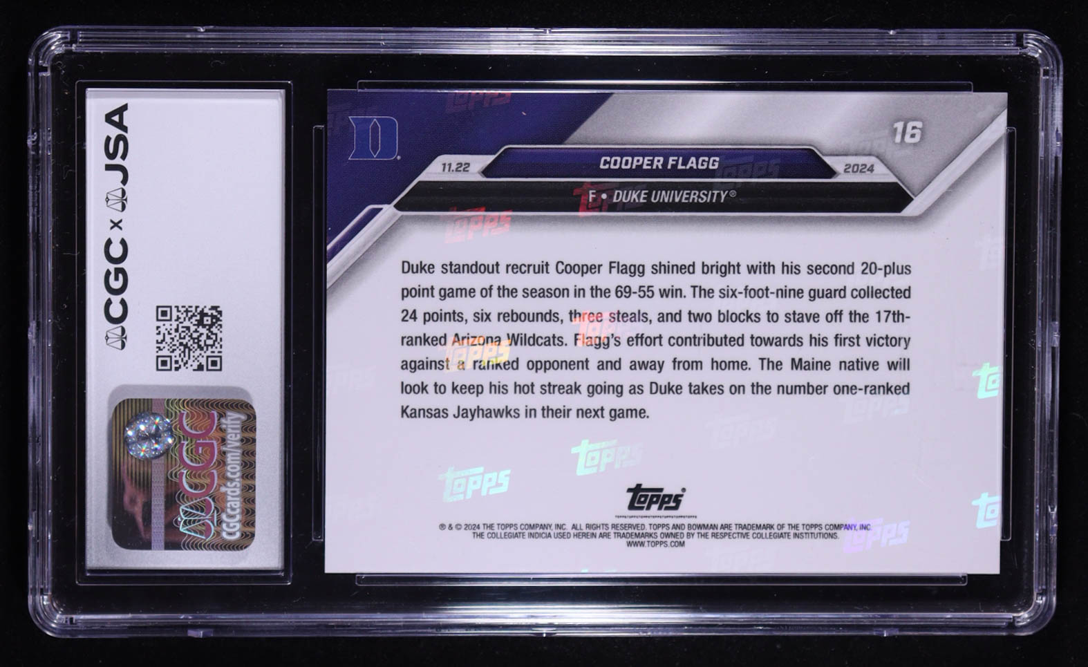 Cooper Flagg Signed 2024-25 Bowman University Now #16 (CGC Encapsulated)