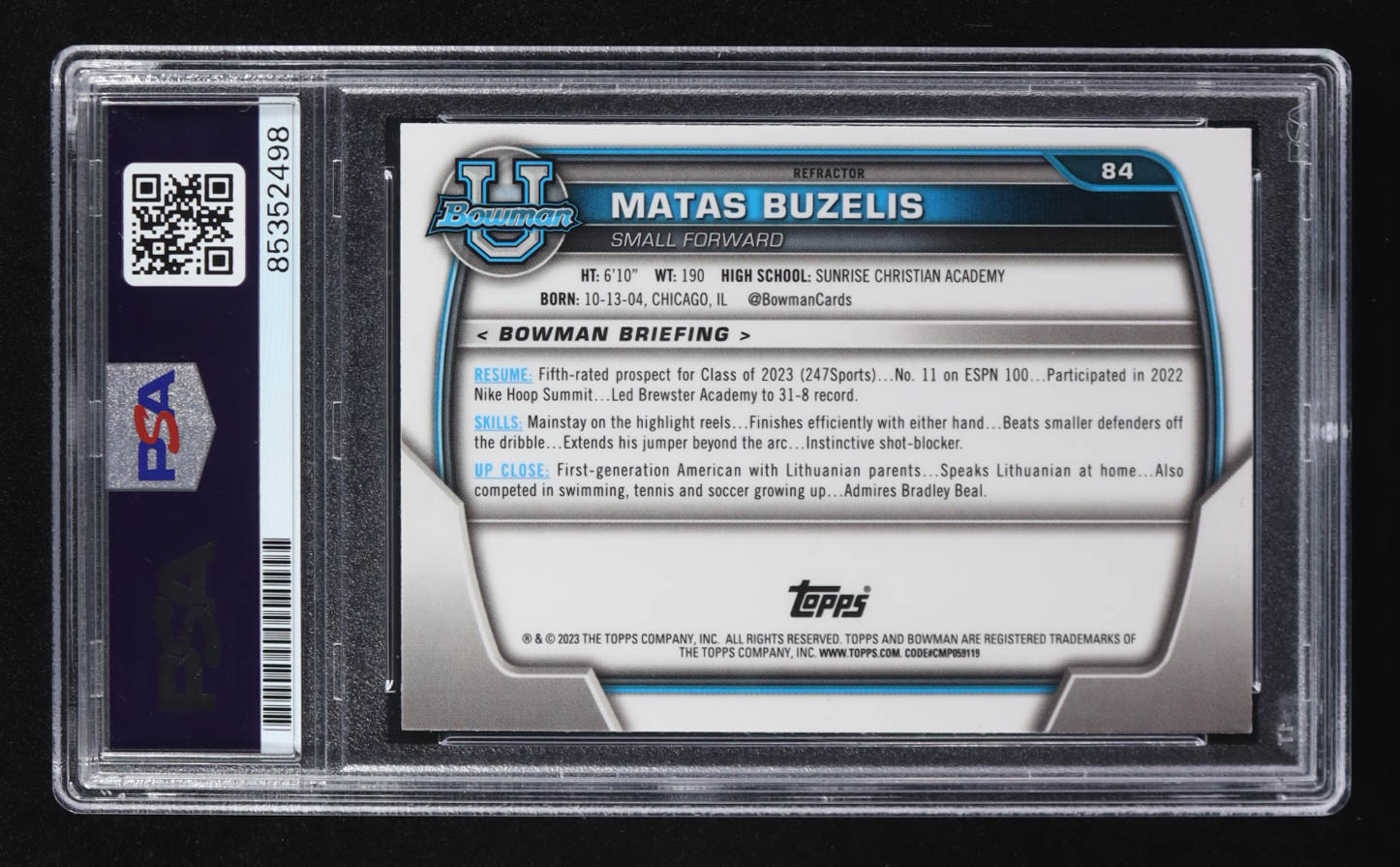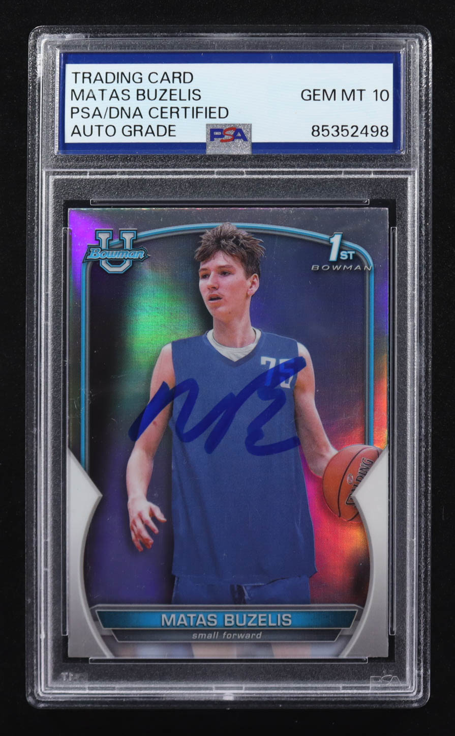 Matas Buzelis Signed 2023 Bowman University Refractor #84 RC (PSA | Autograph Graded PSA 10)
