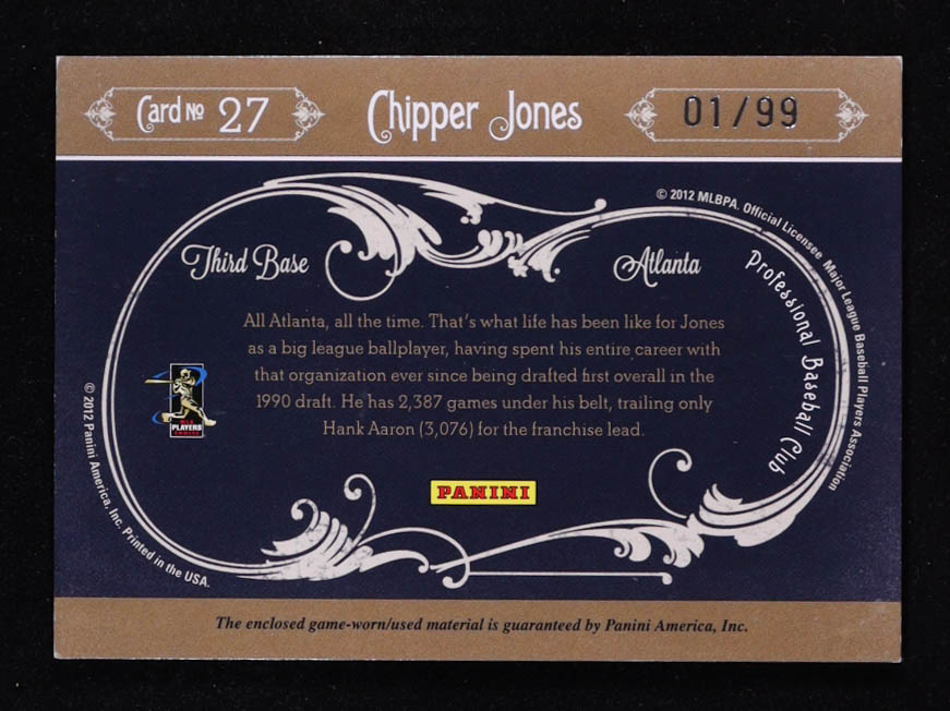 Chipper Jones 2011 Prime Cuts Icons Materials #27 #01/99