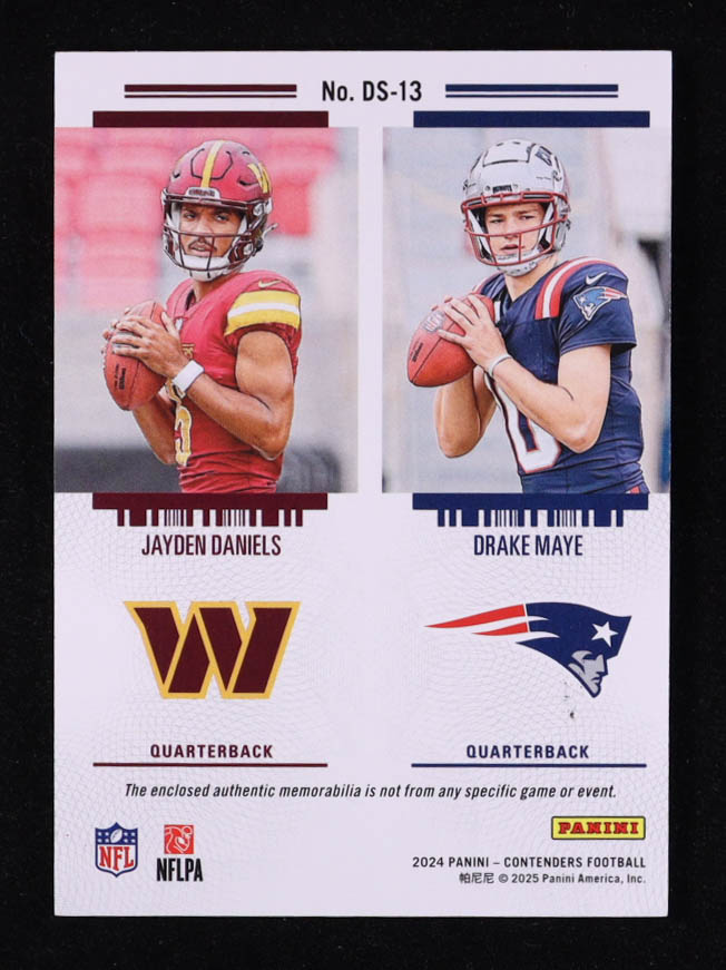 Drake Maye / Jayden Daniels 2024 Panini Contenders Rookie Ticket Dual Swatches #13 RC