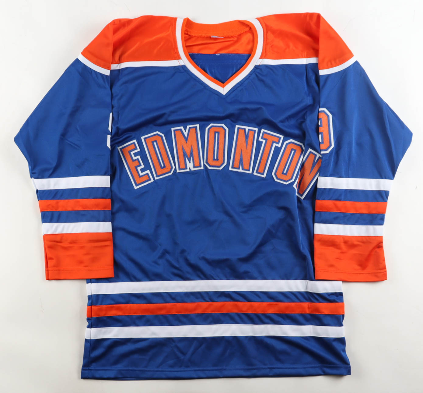 Custom jersey, everything is sewn on, size XL. Hand-signed and inscribed by Glenn Anderson (HOF). Please see photos for details regarding the condition of the item.