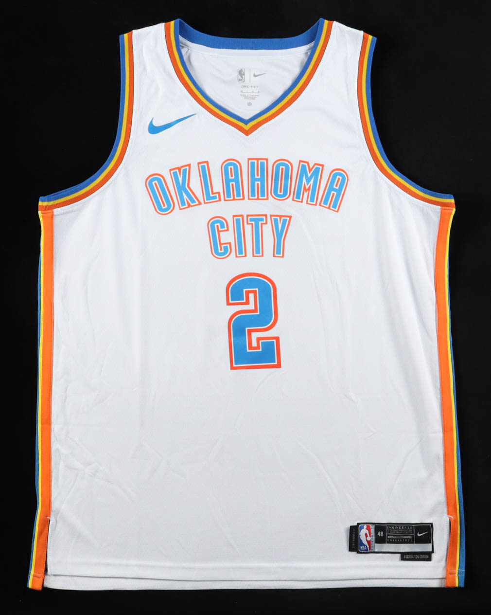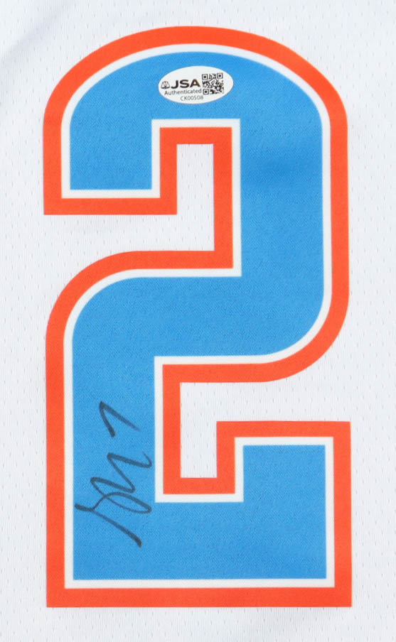 Nike authentic jersey with everything pressed on, size 48. Hand-signed by Shai Gilgeous-Alexander (Oklahoma City Thunder).