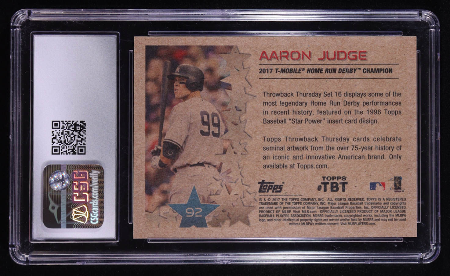 Aaron Judge 2017 Topps Throwback Thursday Derby Legends #92 RC (CSG 9.5)