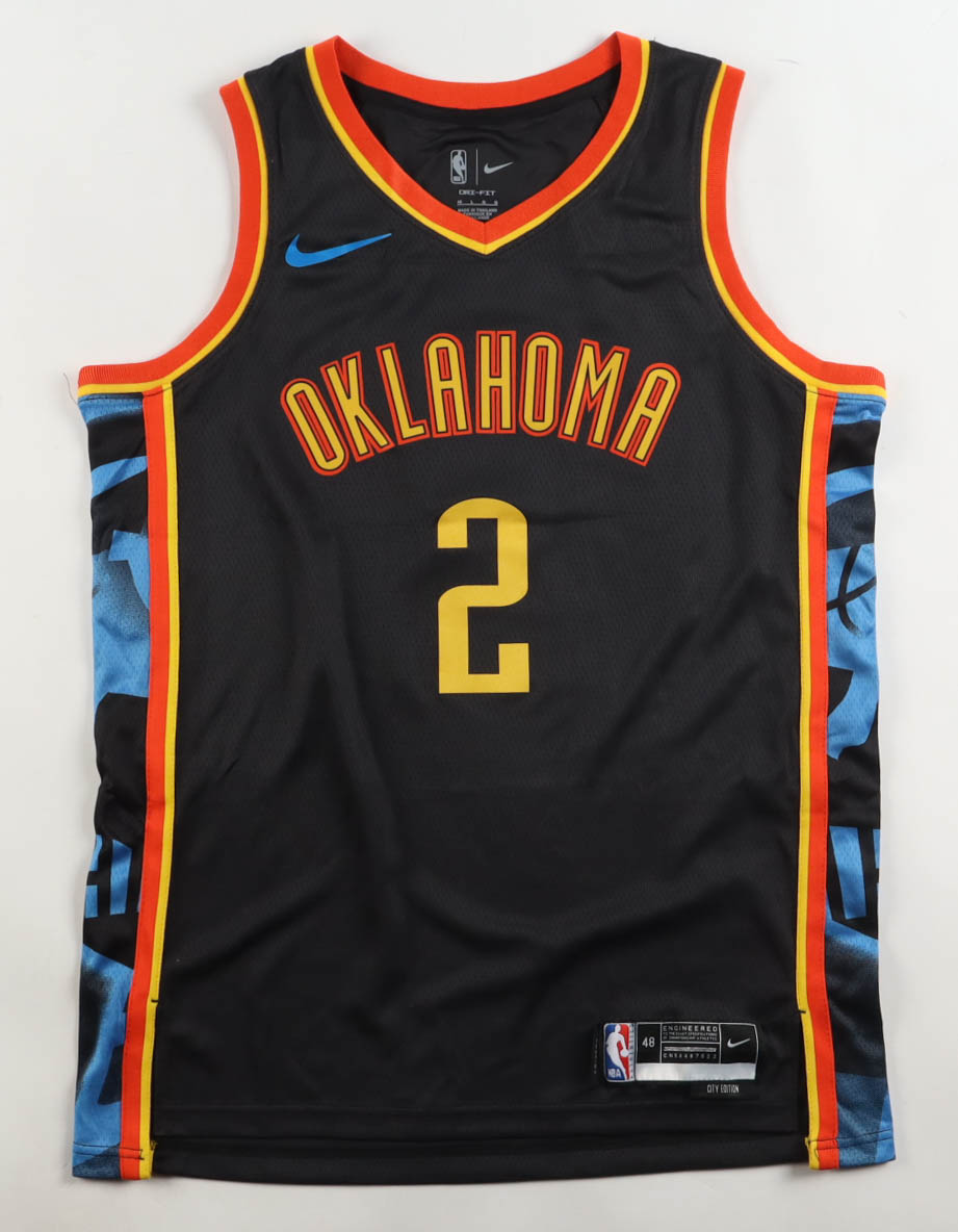 Nike authentic jersey with everything pressed on, size 48. Hand-signed by Shai Gilgeous-Alexander (Oklahoma City Thunder).