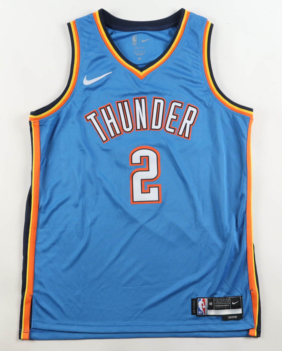 Nike authentic jersey with everything pressed on, size 48. Hand-signed by Shai Gilgeous-Alexander (Oklahoma City Thunder).