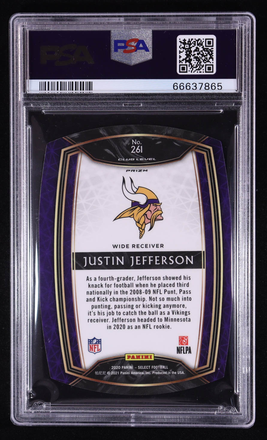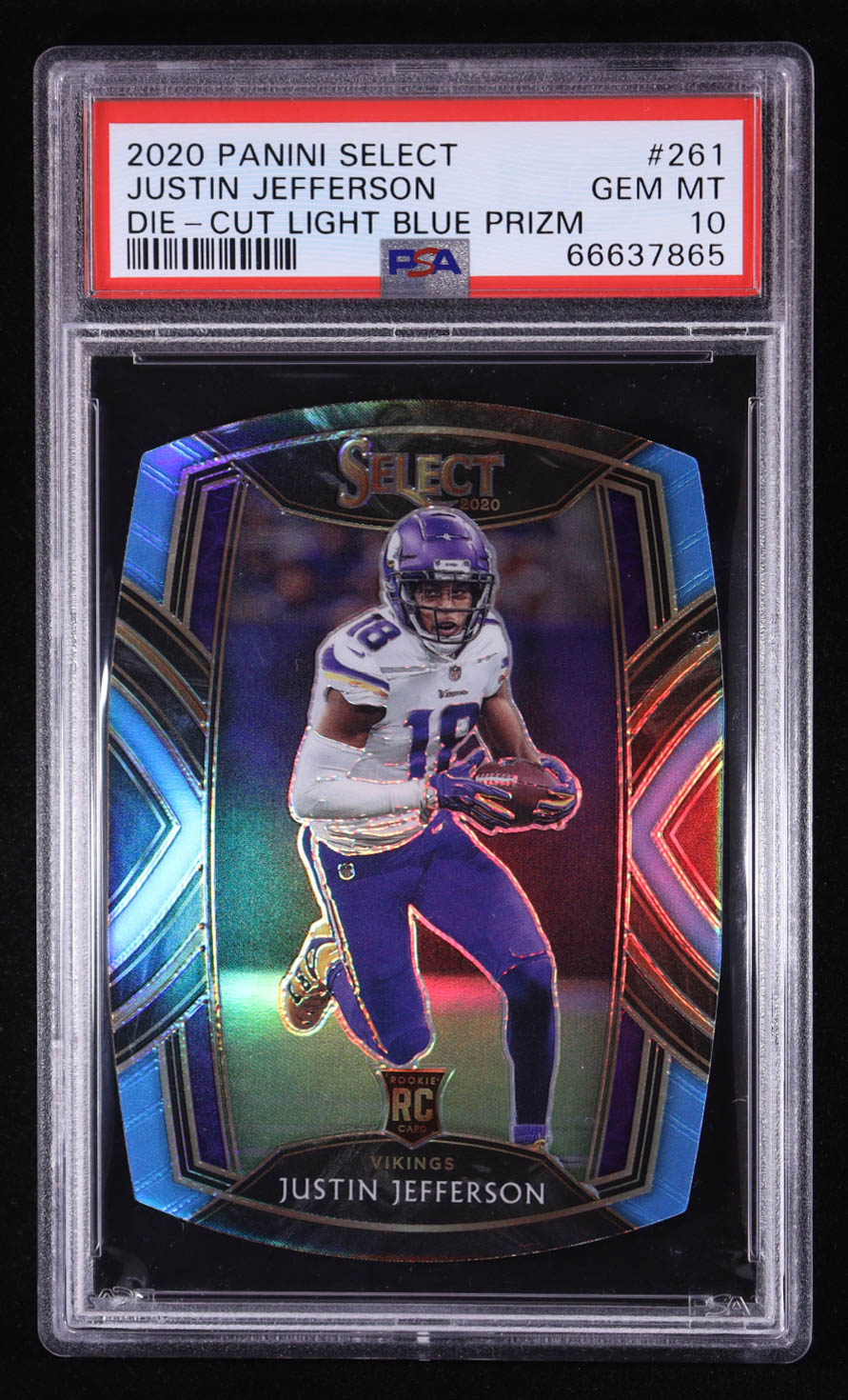 Justin Jefferson 2020 Panini Select Die-Cut Light Blue Prizm #261 RC (PSA 10)