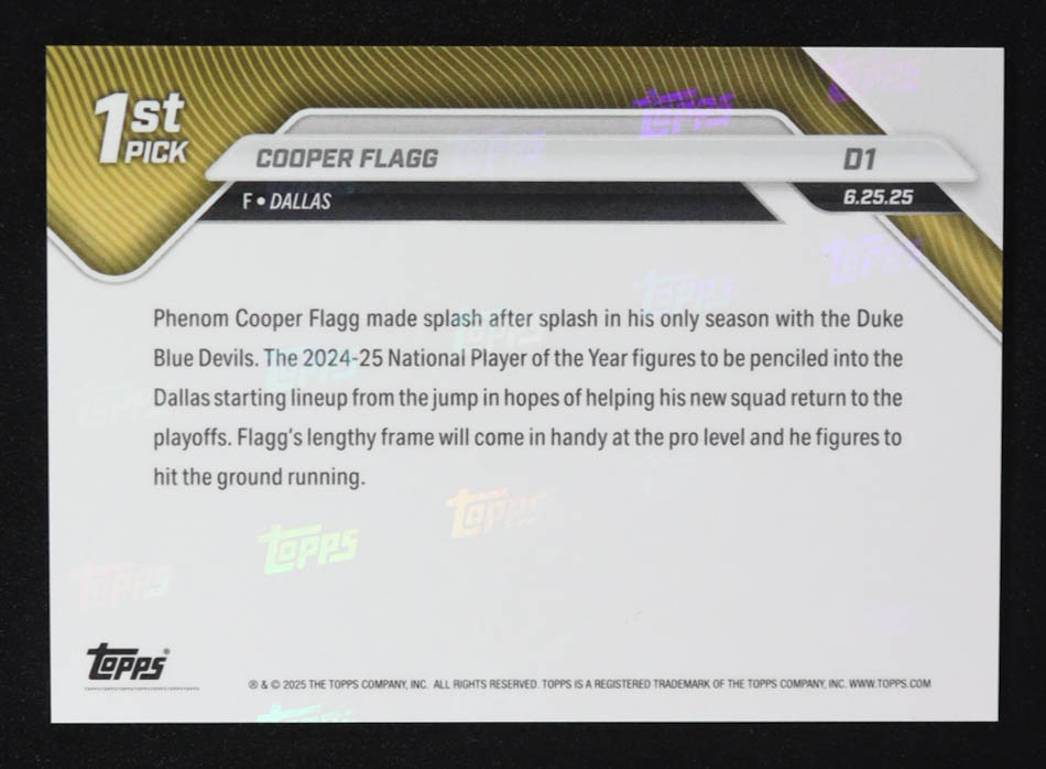 Cooper Flagg 2025-26 Topps Now #D1 RC