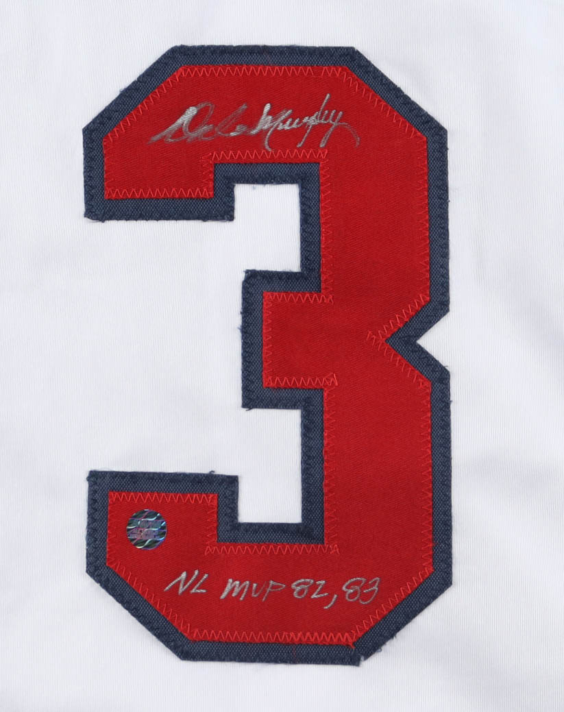 Dale Murphy Signed Jersey Inscribed "NL MVP 82, 83" (AWM)