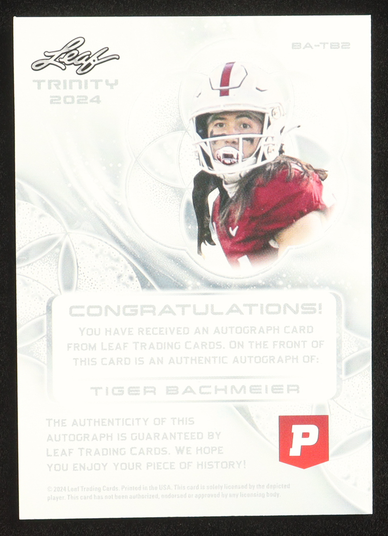 Tiger Bachmeier 2024 Leaf Trinity Pristine Football Autograph #BATB2