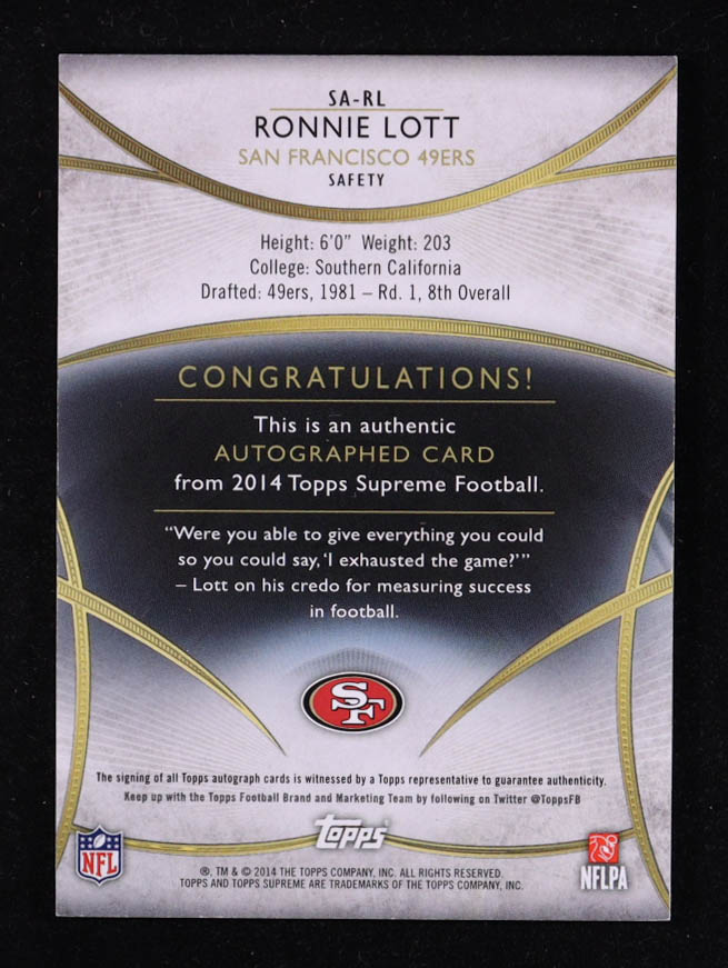 Ronnie Lott 2014 Topps Supreme Autographs #SARL #48/50