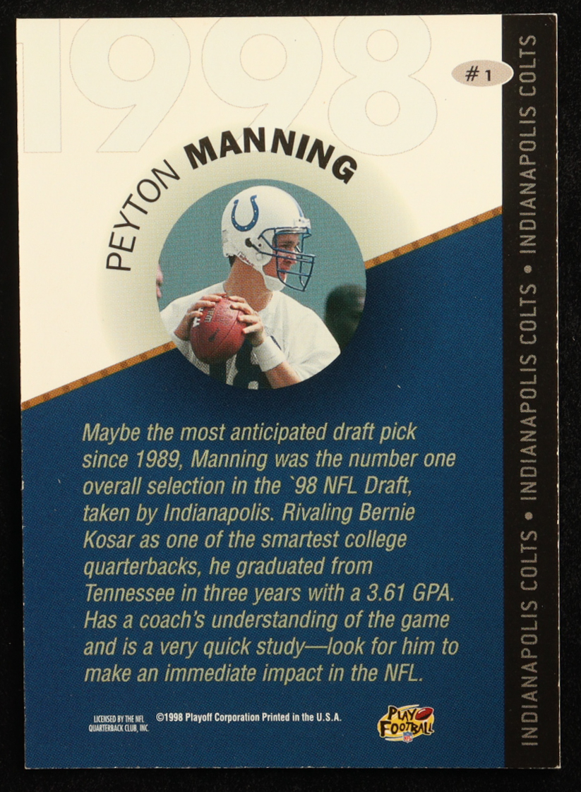 Peyton Manning 1998 Playoff Prestige Draft Picks #1 RC