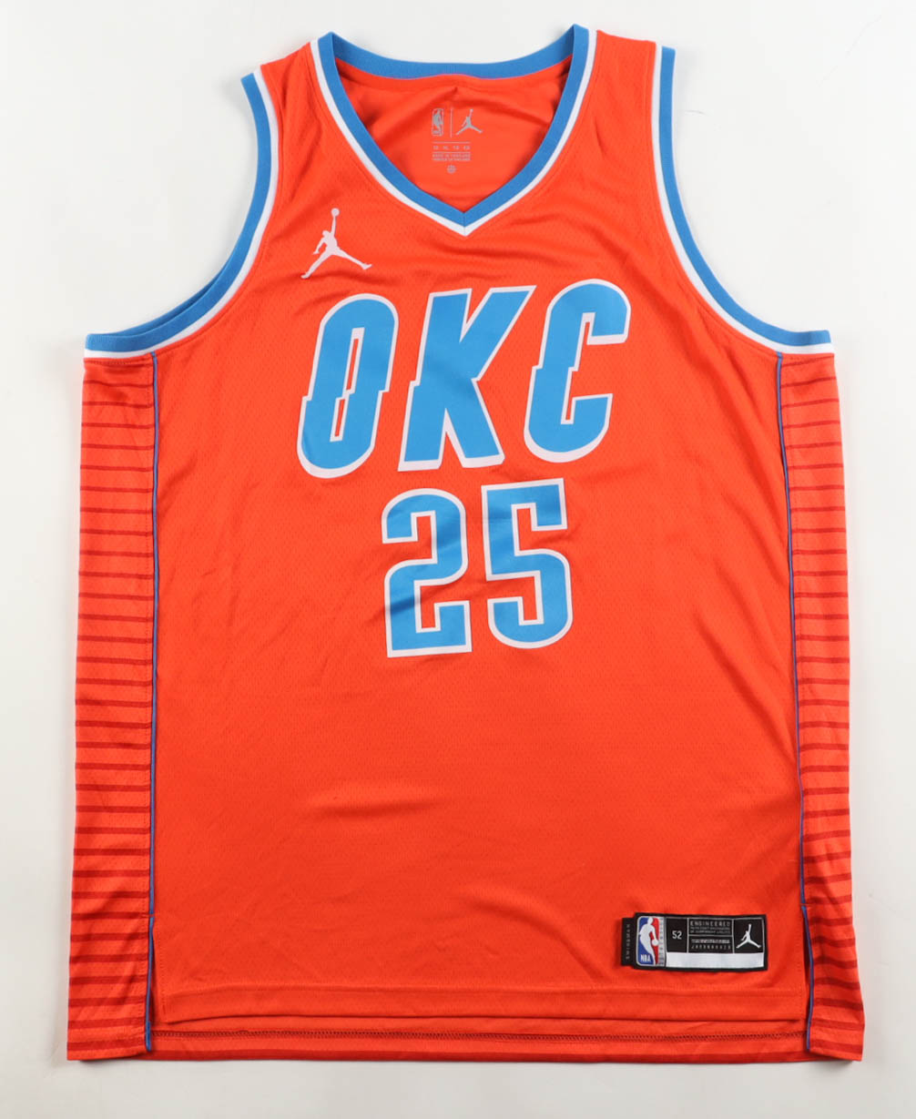 Jordan jersey with everything pressed on, size 52. Jersey is hand-signed by Ajay Mitchell (Oklahoma City Thunder).