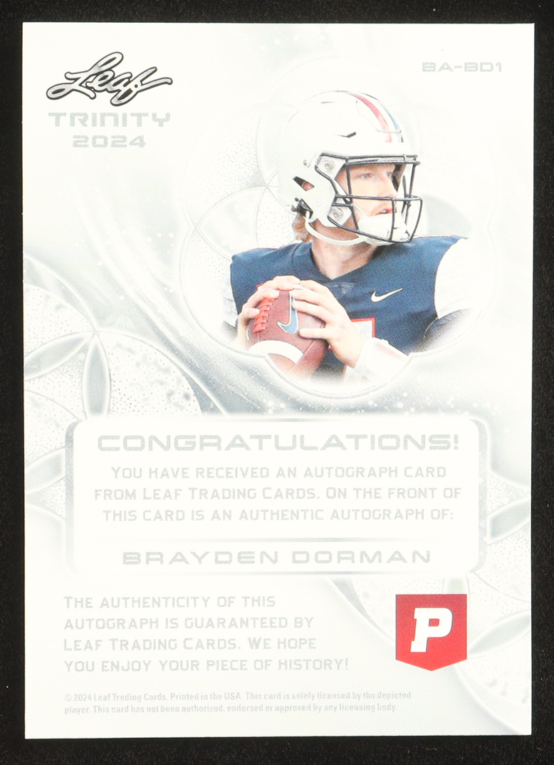 Brayden Dorman 2024 Leaf Trinity Pristine Football Autograph #BABD1