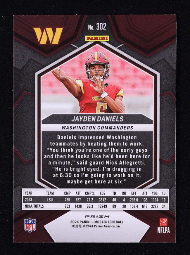 Please see photos for more details regarding the condition of the card (Washington Commanders).
