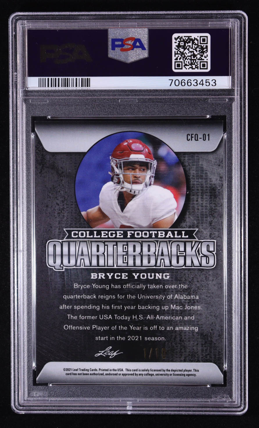 Bryce Young 2021 Leaf Metal NIL Quarterbacks Blue Mojo #CFQ-01 RC #1/10 (PSA 10)