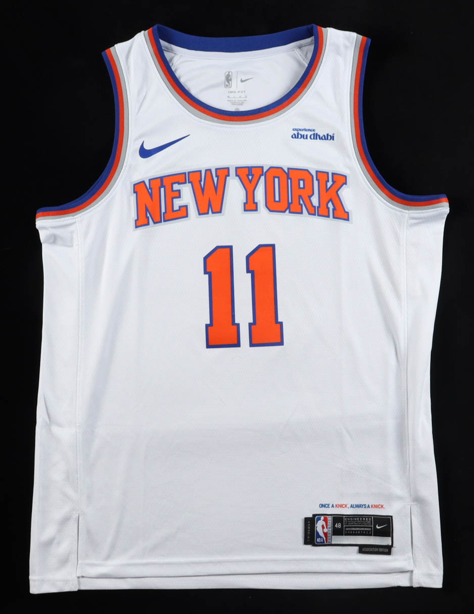 Nike authentic jersey with everything pressed on, size 48. Hand-signed by Jalen Brunson (New York Knicks).