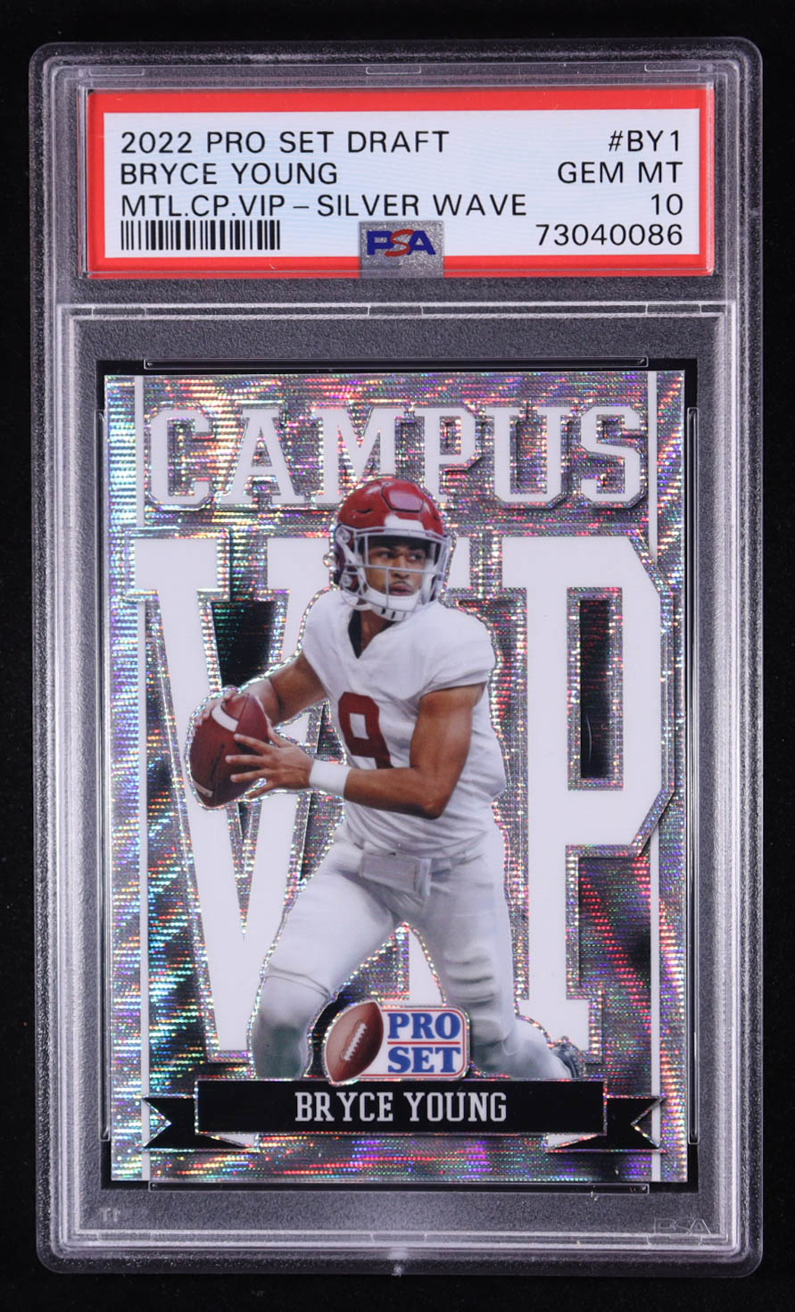 Bryce Young 2022 Pro Set Draft Campus Metal VIP Silver Wave #VIP-BY1 RC (PSA 10)