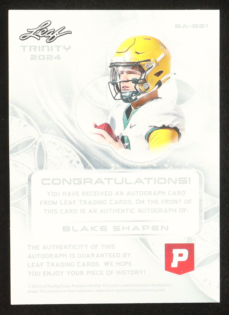 Blake Shapen 2024 Leaf Trinity Pristine Football Autograph #BABS1