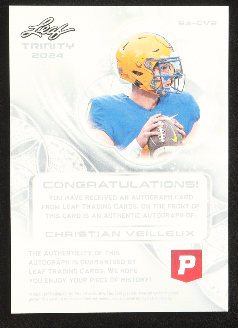 Christian Veilleux 2024 Leaf Trinity Pristine Football Autograph #BACV2