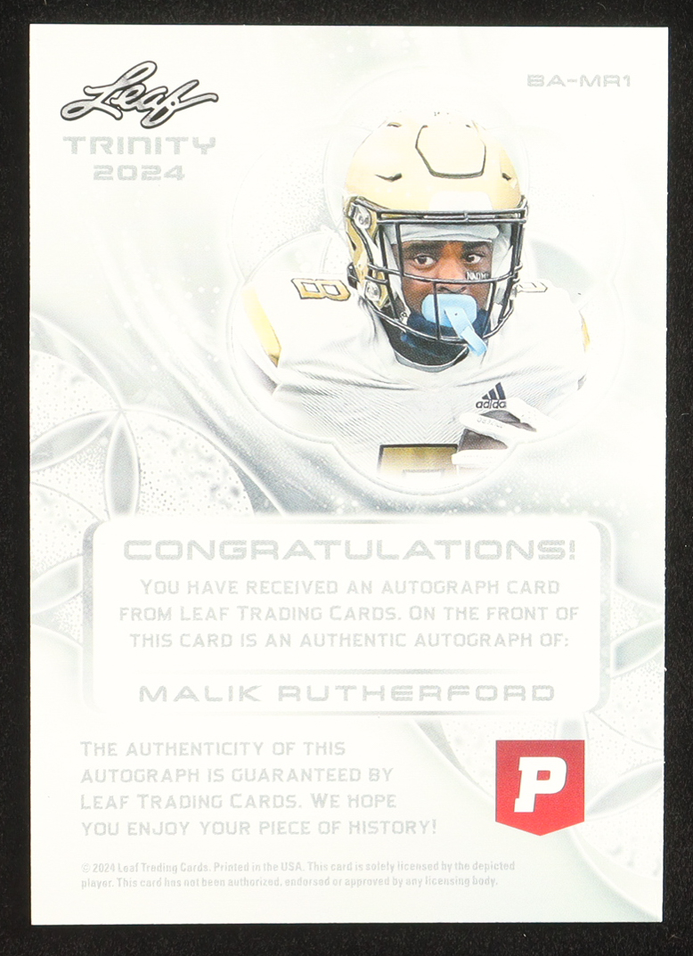 Malik Rutherford 2024 Leaf Trinity Pristine Football Autograph #BAMR1