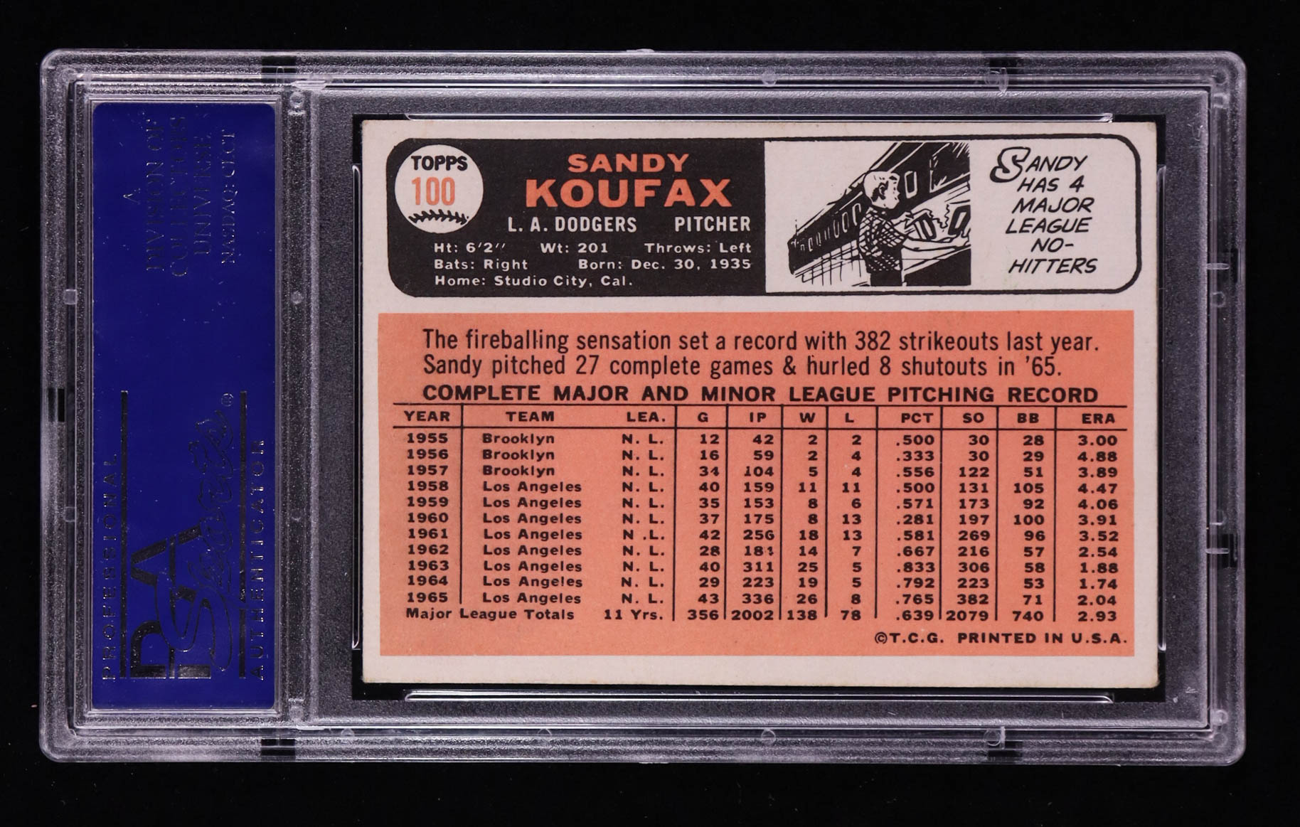 Sandy Koufax 1966 Topps #100 (PSA 4)